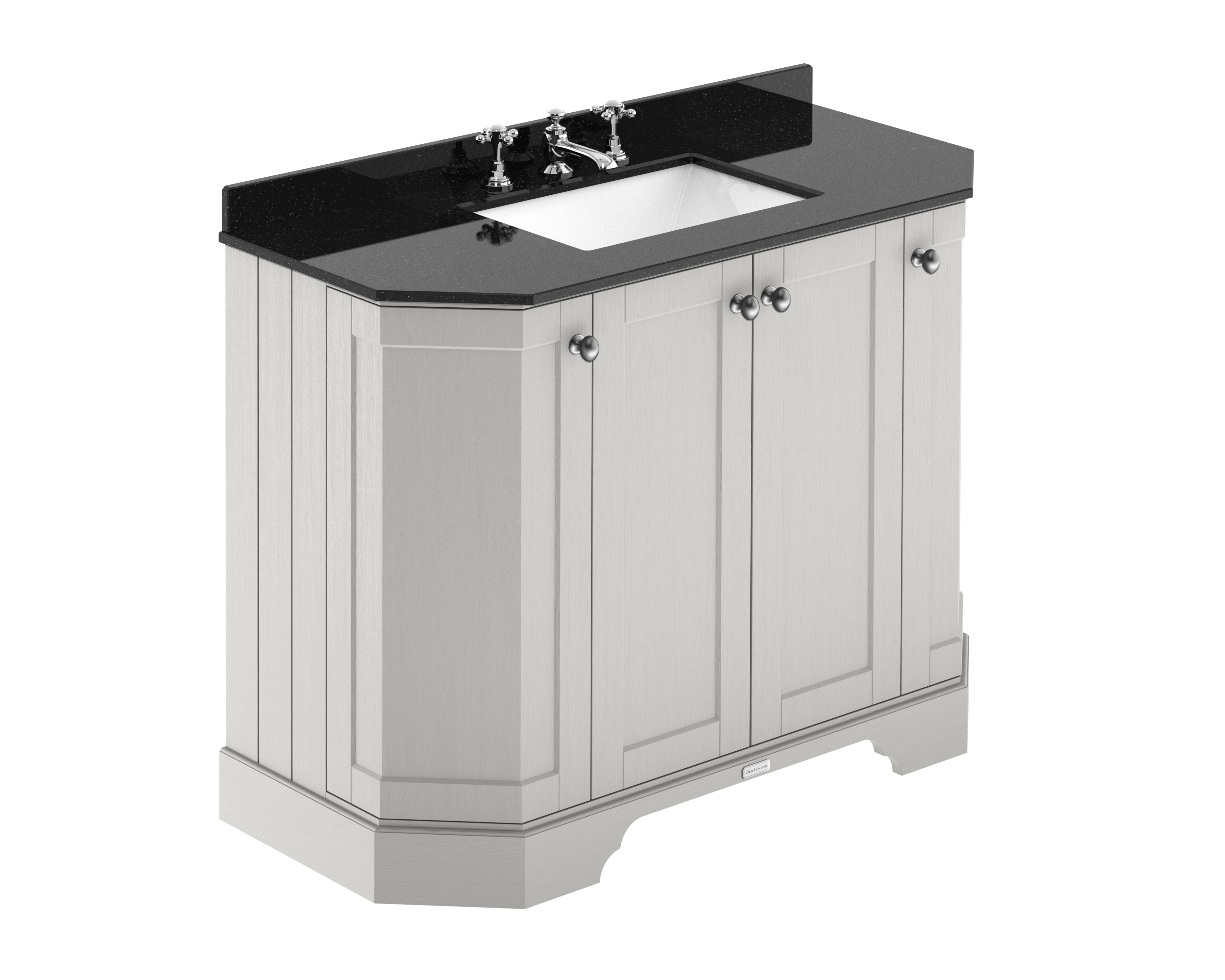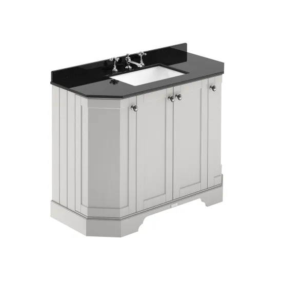 Old London Floor Standing 4 Door Angled Vanity Unit with 3 Tap Hole Black Marble Top 1000mm - Timeless Sand