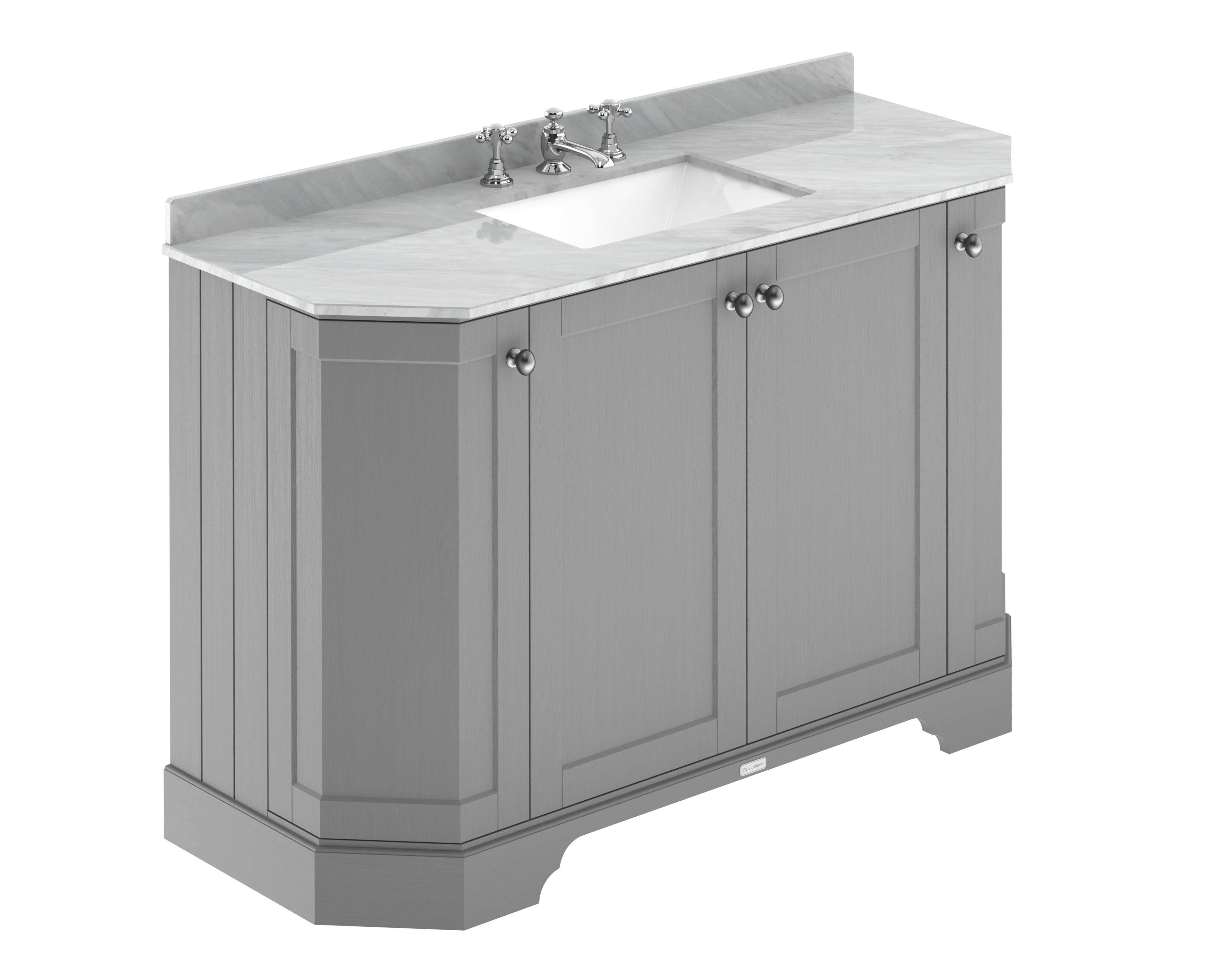 Old London Floor Standing 4 Door Angled Vanity Unit with 3 Tap Hole Grey Marble Top 1200mm - Storm Grey