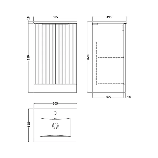Fluted 500mm Floor Standing 2-Door Vanity and Minimalist Basin