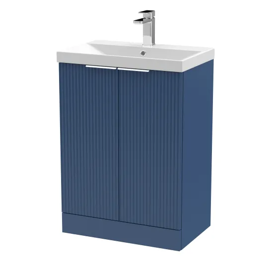 Hudson Reed Fluted 600mm Floor Standing 2-Door Vanity and Thin-Edge Basin - Satin Blue