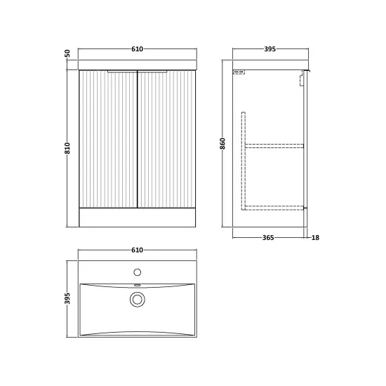 Fluted 600mm Floor Standing 2-Door Vanity and Thin-Edge Basin