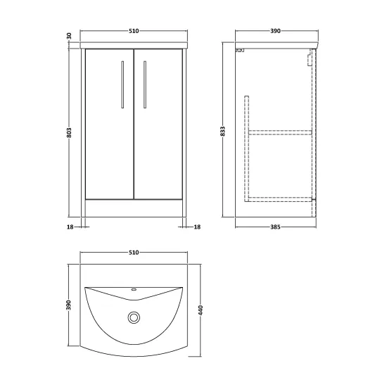 Juno 500mm Floor Standing 2-Door Vanity & Curved 1 Tap Hole Basin