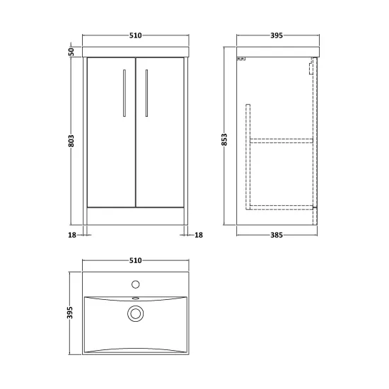Juno 500mm Floor Standing 2-Door Vanity & Thin-Edge 1 Tap Hole Basin