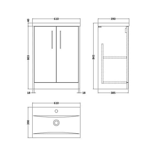 Juno 600mm Floor Standing 2-Door Vanity & Mid-Edge 1 Tap Hole Basin