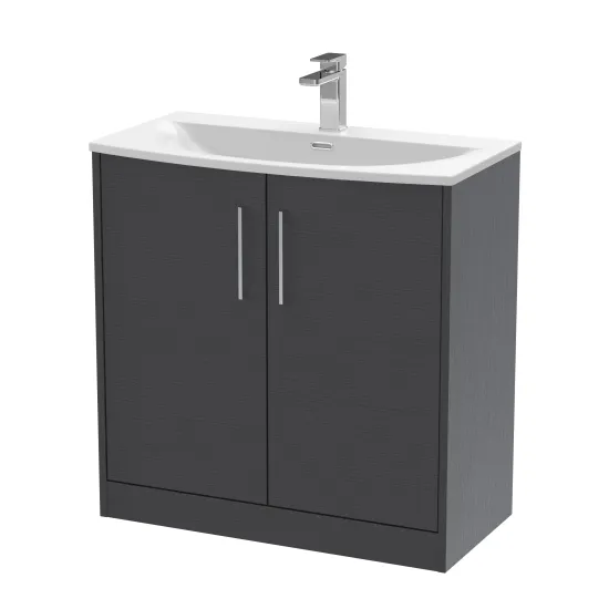 Hudson Reed Juno 800mm Floor Standing 2-Door Vanity & Curved 1 Tap Hole Basin - Graphite Grey