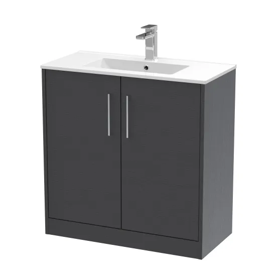 Hudson Reed Juno 800mm Floor Standing 2-Door Vanity & Minimalist 1 Tap Hole Basin - Graphite Grey