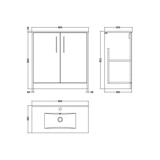 Juno 800mm Floor Standing 2-Door Vanity & Minimalist 1 Tap Hole Basin