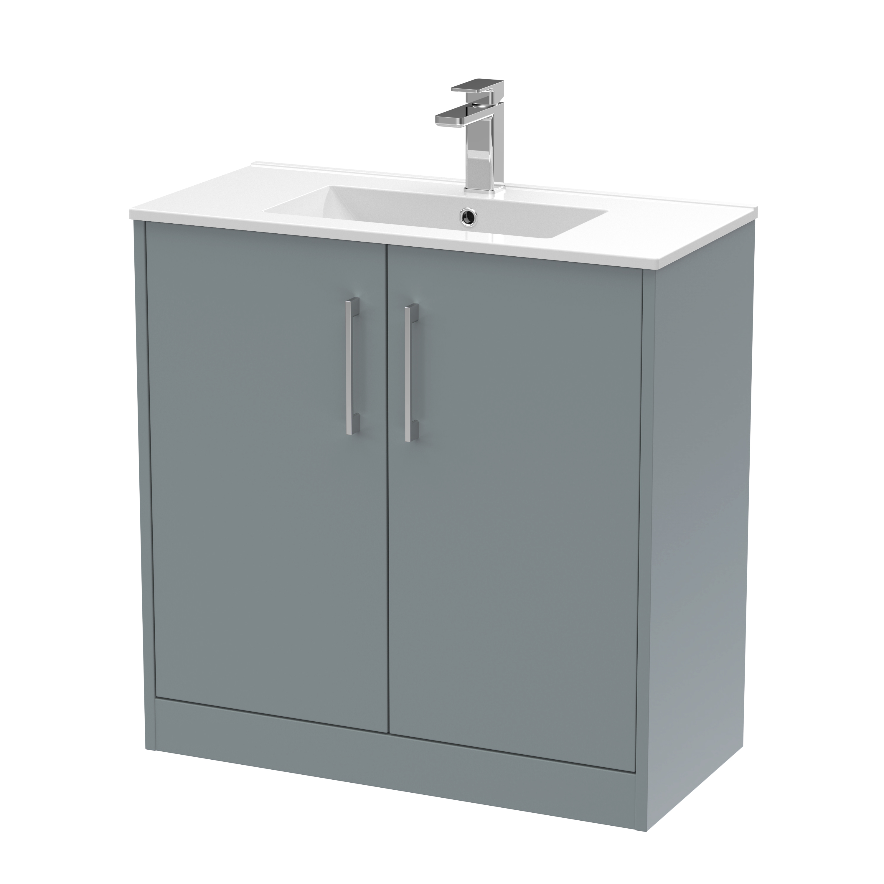 Hudson Reed Juno 800mm Floor Standing 2-Door Vanity & Minimalist 1 Tap Hole Basin - Coastal Grey
