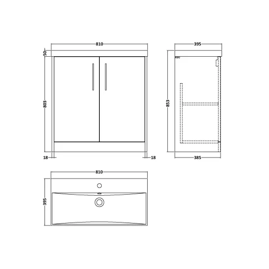 Juno 800mm Floor Standing 2-Door Vanity & Thin-Edge 1 Tap Hole Basin