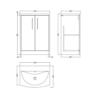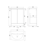 Urban 600mm Floor Standing 2-Door Unit and Curved Basin 1 Tap Hole