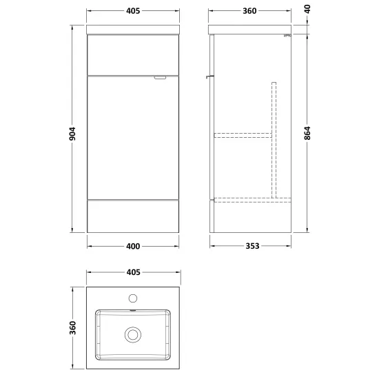 Fusion Floor Standing 1 Door Vanity Unit & Polymarble Basin 400mm