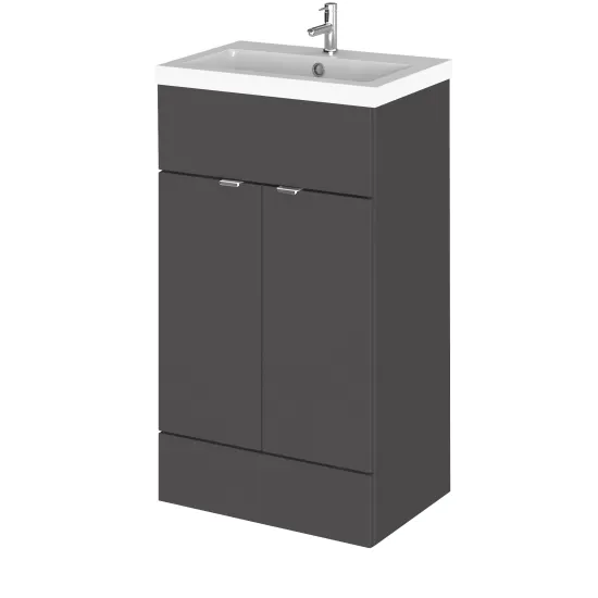 Hudson Reed Fusion Floor Standing 2 Door Vanity Unit & Polymarble Basin 500mm - Gloss Grey
