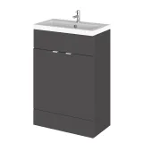Hudson Reed Fusion Floor Standing 2 Door Vanity Unit & Polymarble Basin 600mm - Anthracite Woodgrain