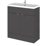 Hudson Reed Fusion Floor Standing 2 Door Vanity Unit & Polymarble Basin 800mm - Anthracite Woodgrain