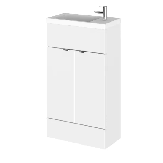 Hudson Reed Fusion Floor Standing 2 Door Vanity Unit & Polymarble Basin Compact 500mm - Gloss White