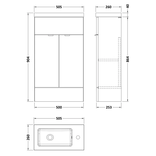 Fusion Floor Standing 2 Door Vanity Unit & Polymarble Basin Compact 500mm