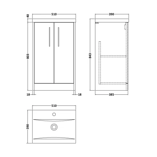 Minimum quantity for "Juno Floor Standing 2 Door Vanity Basin Unit & Mid-Edge Ceramic Basin, 500mm" is 1.