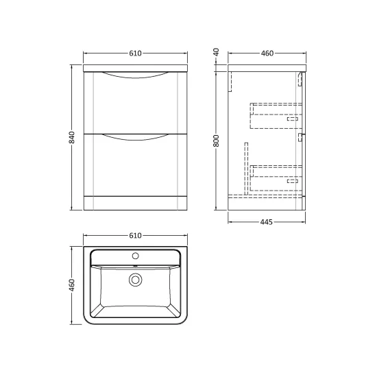 Lunar Floor Standing 2 Drawer Unit & Ceramic Basin, 600mm