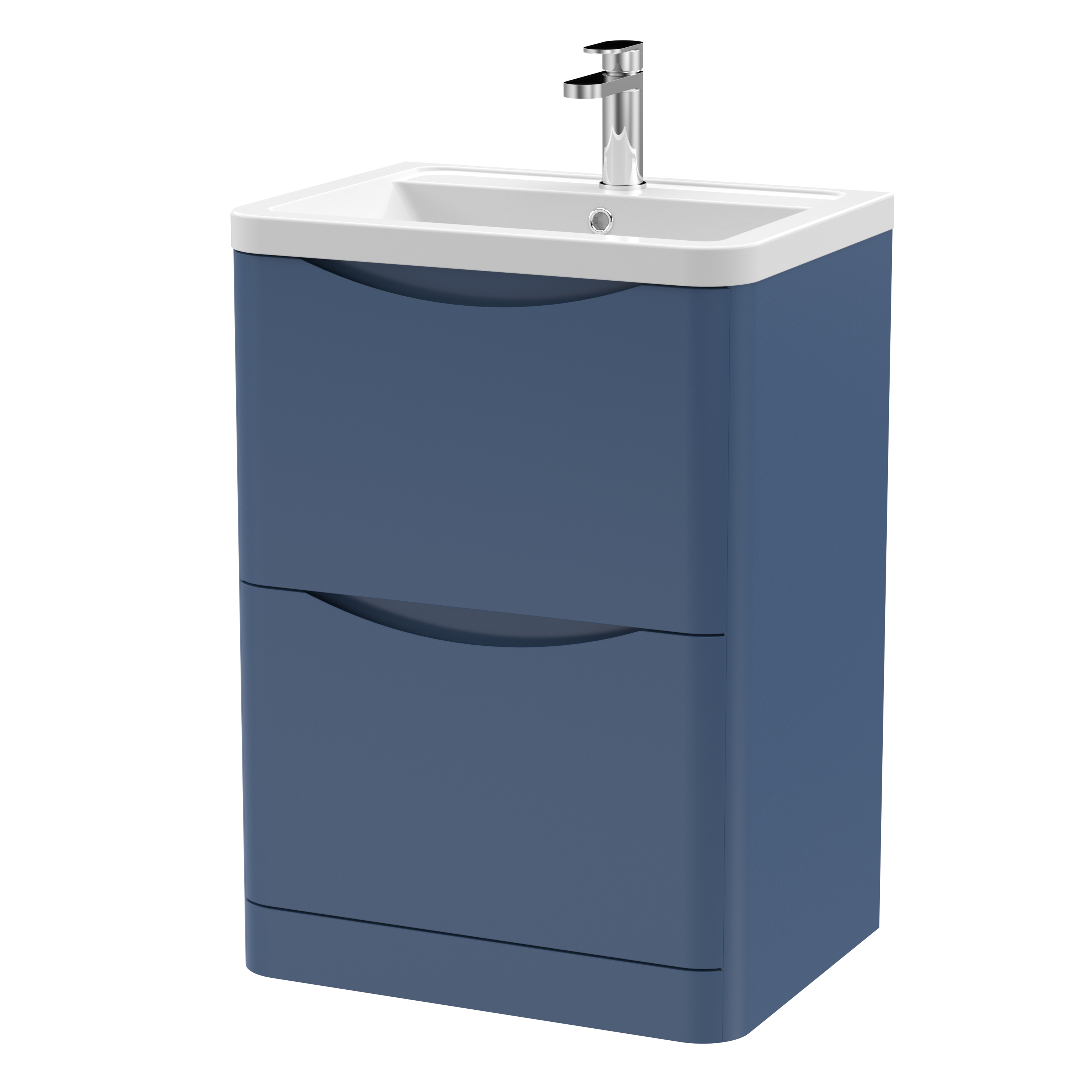 nuie Lunar Floor Standing 2 Drawer Unit & Ceramic Basin, 600mm - Satin Blue