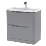 nuie Lunar Floor Standing 2 Drawer Unit & Ceramic Basin, 800mm - Satin Grey