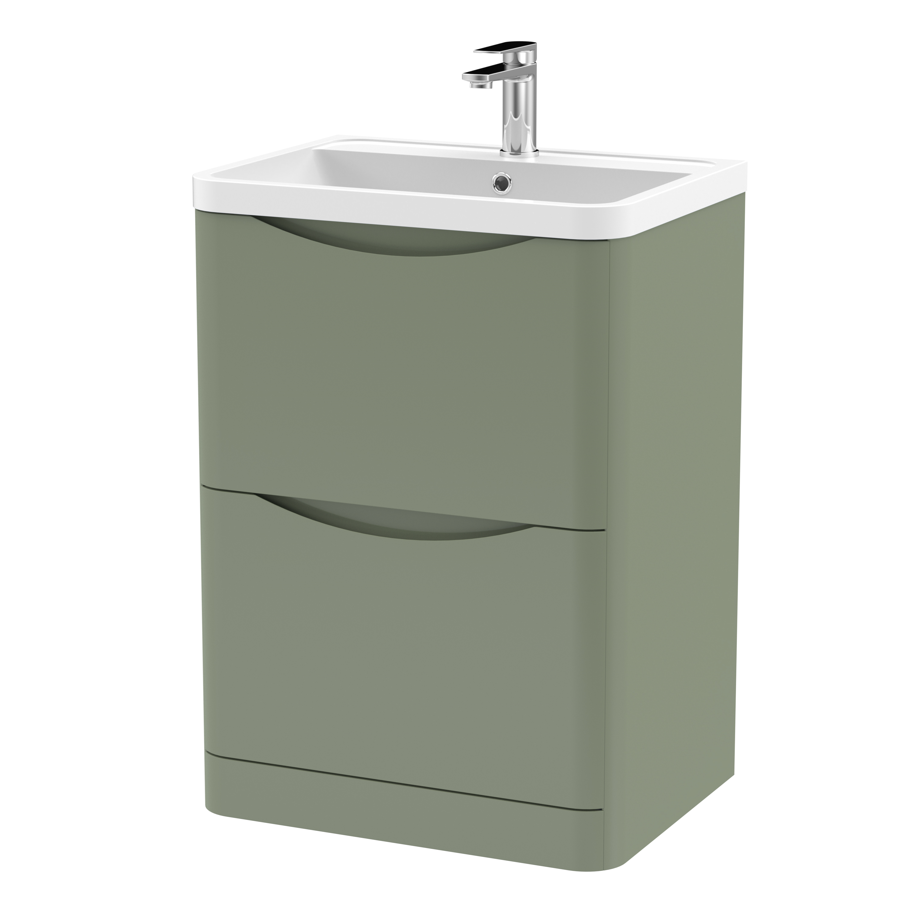 nuie Lunar Floor Standing 2 Drawer Unit & Polymarble Basin, 600mm - Satin Green
