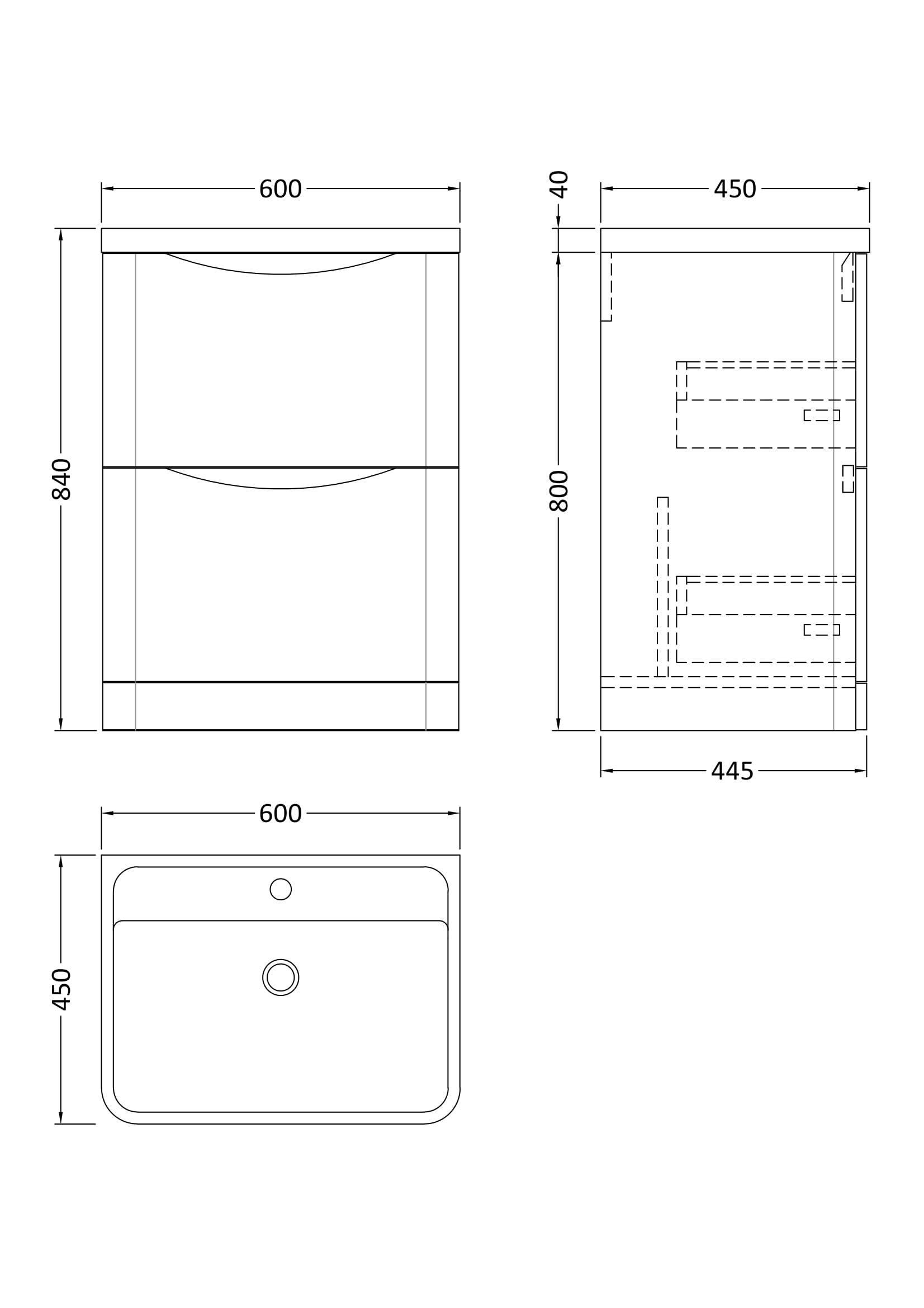 Lunar Floor Standing 2 Drawer Unit & Polymarble Basin, 600mm