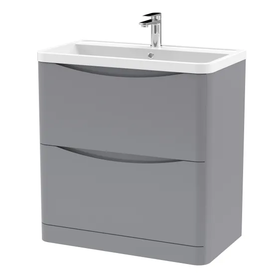 nuie Lunar Floor Standing 2 Drawer Unit & Polymarble Basin, 800mm - Satin Grey