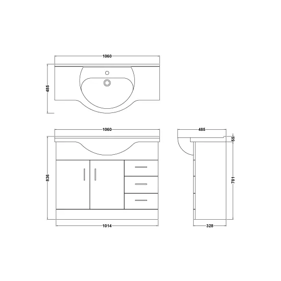 Minimum quantity for "Mayford Floor Standing 2 Door 3 Drawer Vanity Unit with Round Basin 1050mm" is 1.