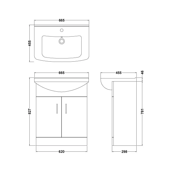 Mayford Floor Standing 2 Door Vanity Unit with Square Basin 650mm