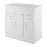 The gloss white finish compliments any modern bathroom to create a designer look. Ceramic basin. This floor standing unit gives ample storage, perfect for a busy family bathroom. This unit has soft close doors which limits the daily wear and tear and provides a quieter closing action. Colour co-ordinate your unit with a gloss white WC unit.