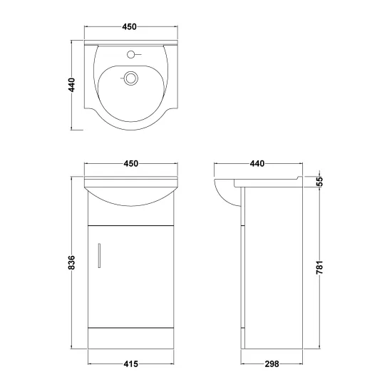 Mayford Floor Standing Single Door Vanity Unit with Round Basin 450mm