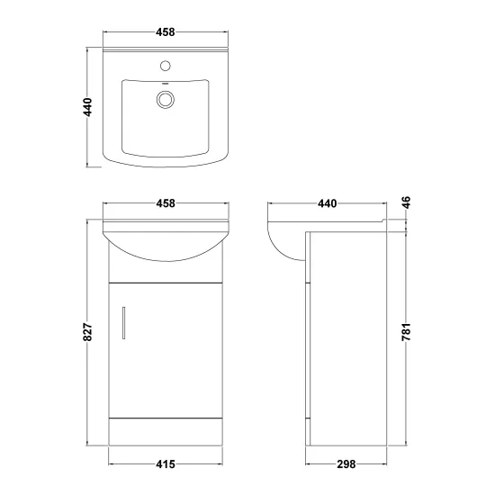 Mayford Floor Standing Single Door Vanity Unit with Square Basin 450mm