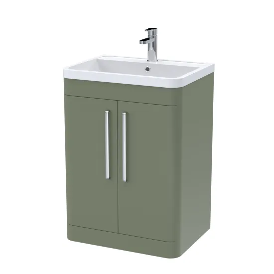 nuie Parade Floor Standing 2 Door Vanity Basin Unit & Polymarble Basin, 600mm - Satin Green