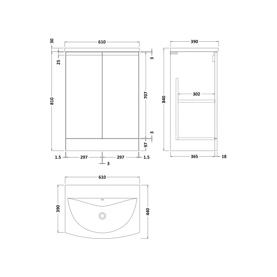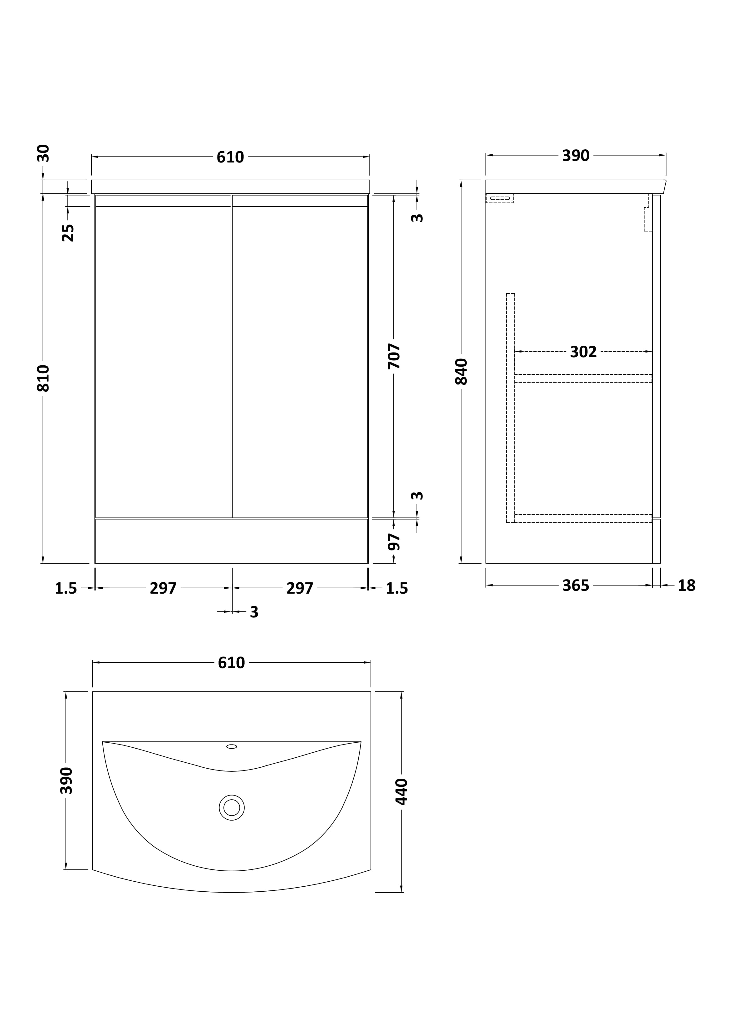 Urban Floor Standing 2 Door Vanity Unit with Curved Basin 600mm