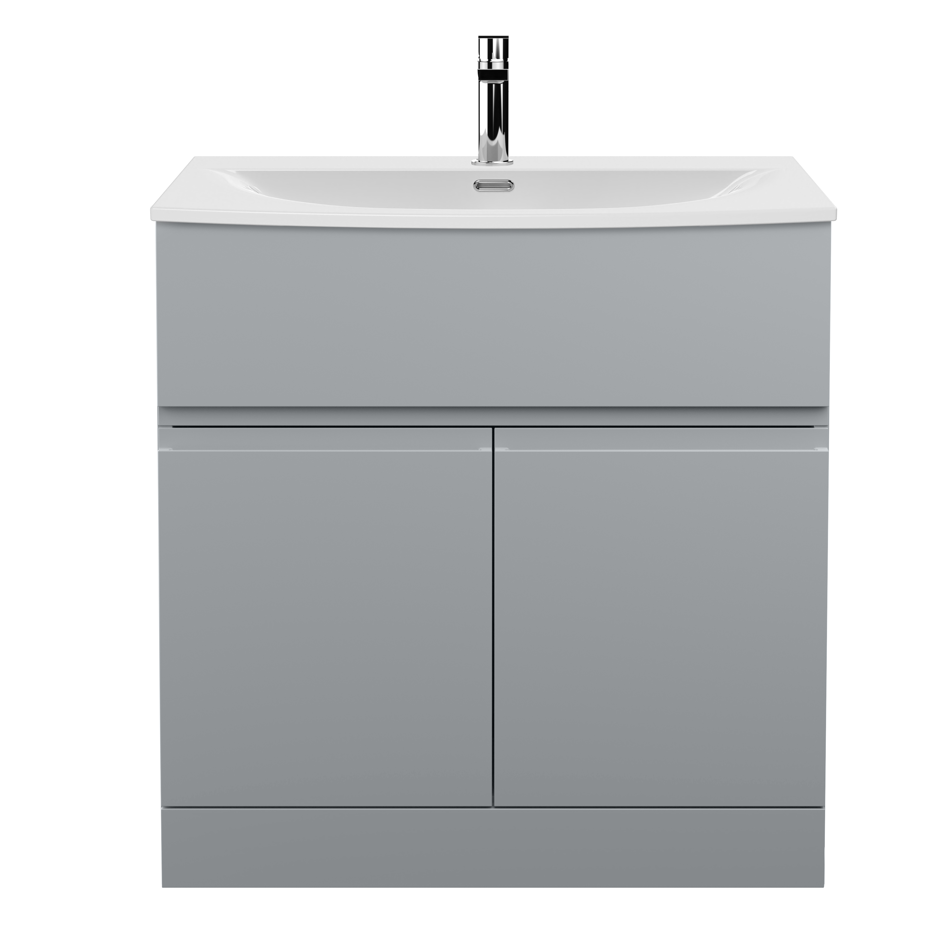 Hudson Reed Urban Floor Standing 2 Door Vanity Unit with Curved Basin 800mm - Satin Grey
