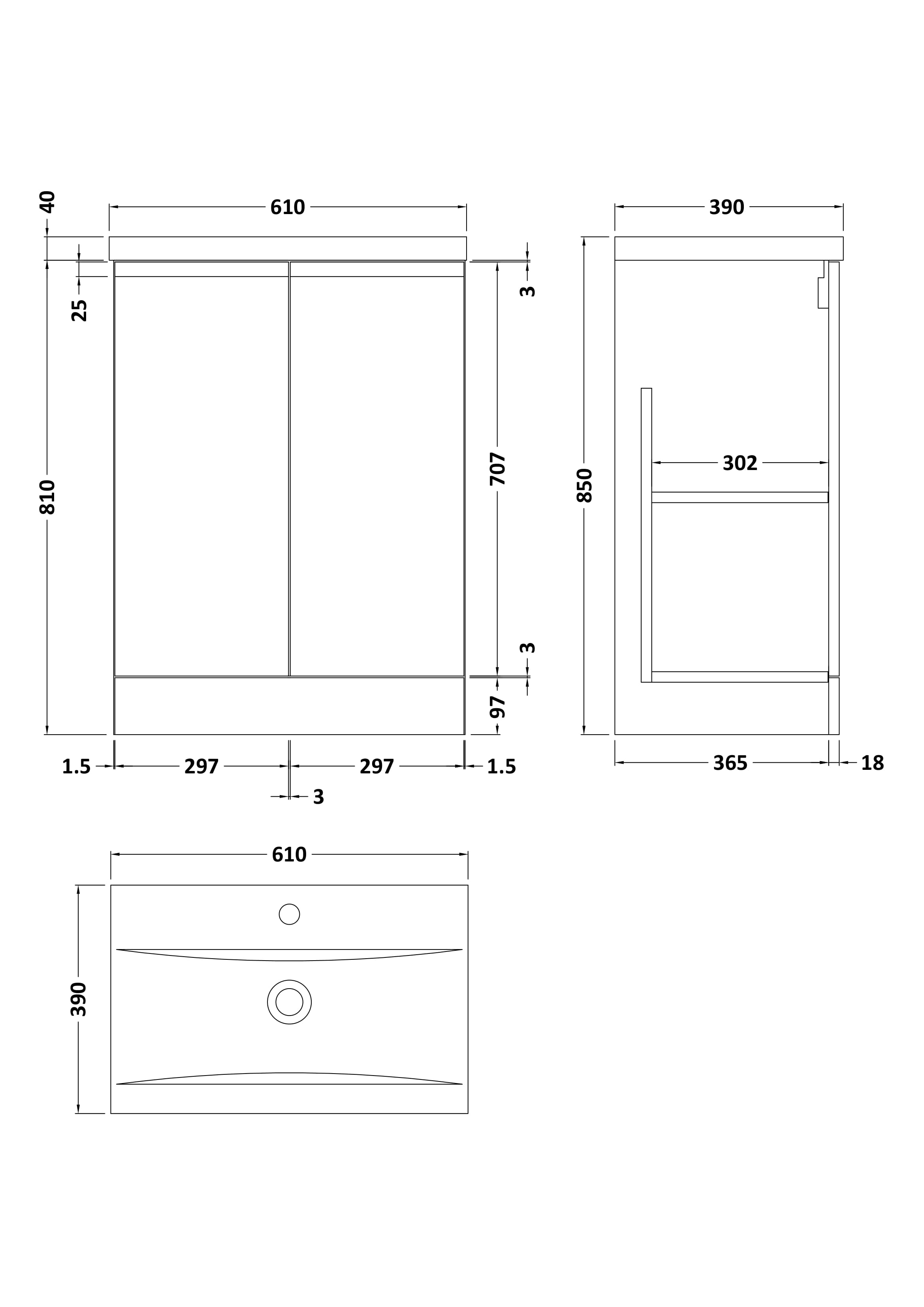 Urban Floor Standing 2 Door Vanity Unit with Mid-Edge Basin 600mm
