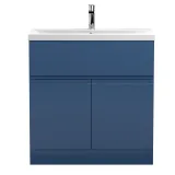 Hudson Reed Urban Floor Standing 2 Door Vanity Unit with Thin-Edge Basin 800mm - Satin Blue
