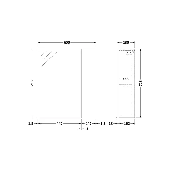 Fusion Fitted Wall Hung 2 Door Mirror Unit (75/25) 600mm