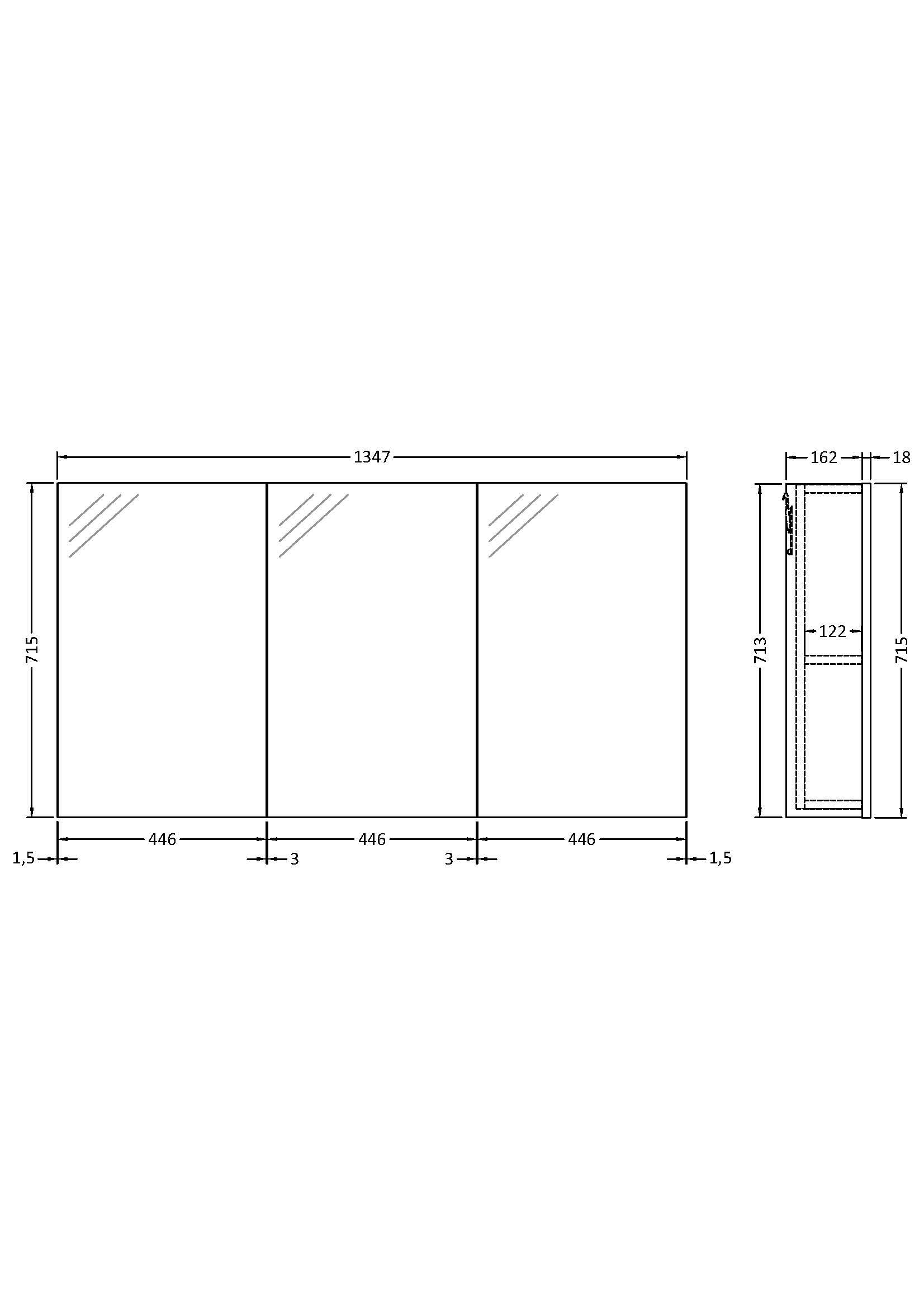 Quartet Wall Hung 3 Door Mirror Cabinet 1350mm