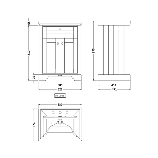 Minimum quantity for "Old London Floor Standing 2 Door Vanity Unit & 3 Tap Hole Fireclay Basin, 600mm" is 1.
