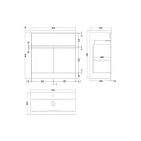 Juno Floor Standing 2 Door Vanity Basin Unit & Curved Ceramic Basin, 800mm