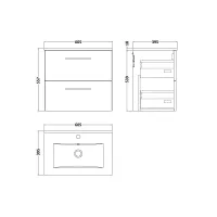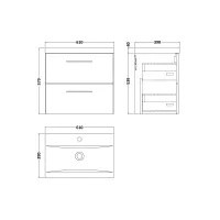 Lunar Wall Hung 2 Drawer Unit & Ceramic Basin, 600mm