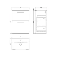 Arno 600mm Wall Hung 2-Drawer Vanity & Minimalist Basin