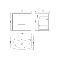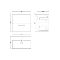 Lunar Wall Hung 2 Drawer Unit & Polymarble Basin, 600mm
