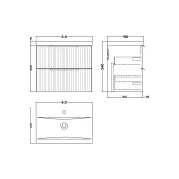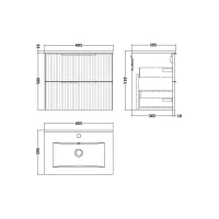 Fluted 600mm Wall Hung 2-Drawer Vanity and Minimalist Basin
