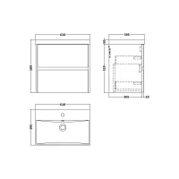 Lunar Wall Hung 2 Drawer Unit & Ceramic Basin, 600mm