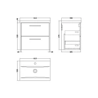 Lunar Wall Hung 2 Drawer Unit & Polymarble Basin, 600mm