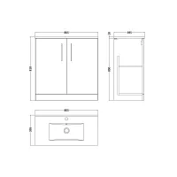 Parade Floor Standing 2 Door Vanity Basin Unit & Polymarble Basin, 600mm