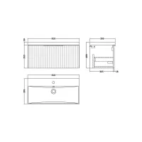 Fluted 800mm Wall Hung Single Drawer Vanity and Mid-Edge Basin