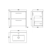 Fusion Wall Hung 2 Drawer Vanity Unit & Ceramic Basin 500mm